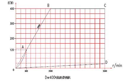 2.特性曲線 DW系列電渦流測功機特性曲線表示測功機在不同轉速下所能吸收的功率范圍,它由OABC組成。 OA—最大扭矩線。當最大扭矩為常數時所能吸收的最大功率,隨著轉速的增加而上升,在A點達到扭矩強度所允許的最大功率。 AB—最大功率線。測功機達到最大扭矩點(A)后,隨著轉速的變化測功機所允許吸收的最大功率。 BC—最高轉速線。測功機在工作時允許的最高轉速。 上述三段限線所包圍的區域為測功機的工作范圍。凡動力機或其它機械設備的動力特性在OABC所包圍的范圍內者,均能用該型測功機進行特性試驗,用戶在選用測功機時須稍留有余地。但余地太大,測試精度則難以保證。 或由OABCD組成,則AB線為主軸強度所容許的最大扭矩值,其余BC、CD線含意同上。 ![]() ![]() ![]() ![]() ![]() 三 產品的主要結構 電渦流測功機分感應子式、盤式兩種,主要由旋轉部件(感應轉子)、擺動部件(電樞和勵磁線圈)、測力部件(測力臂加應變片式拉壓力傳感器)和校正部件(校正臂加砝碼)組成,其結構簡圖如圖一、圖二(測力部件、校正部件未畫)。 ![]() 圖一:盤式電渦流測功機 ![]() 圖二:鼓式電渦流測功機